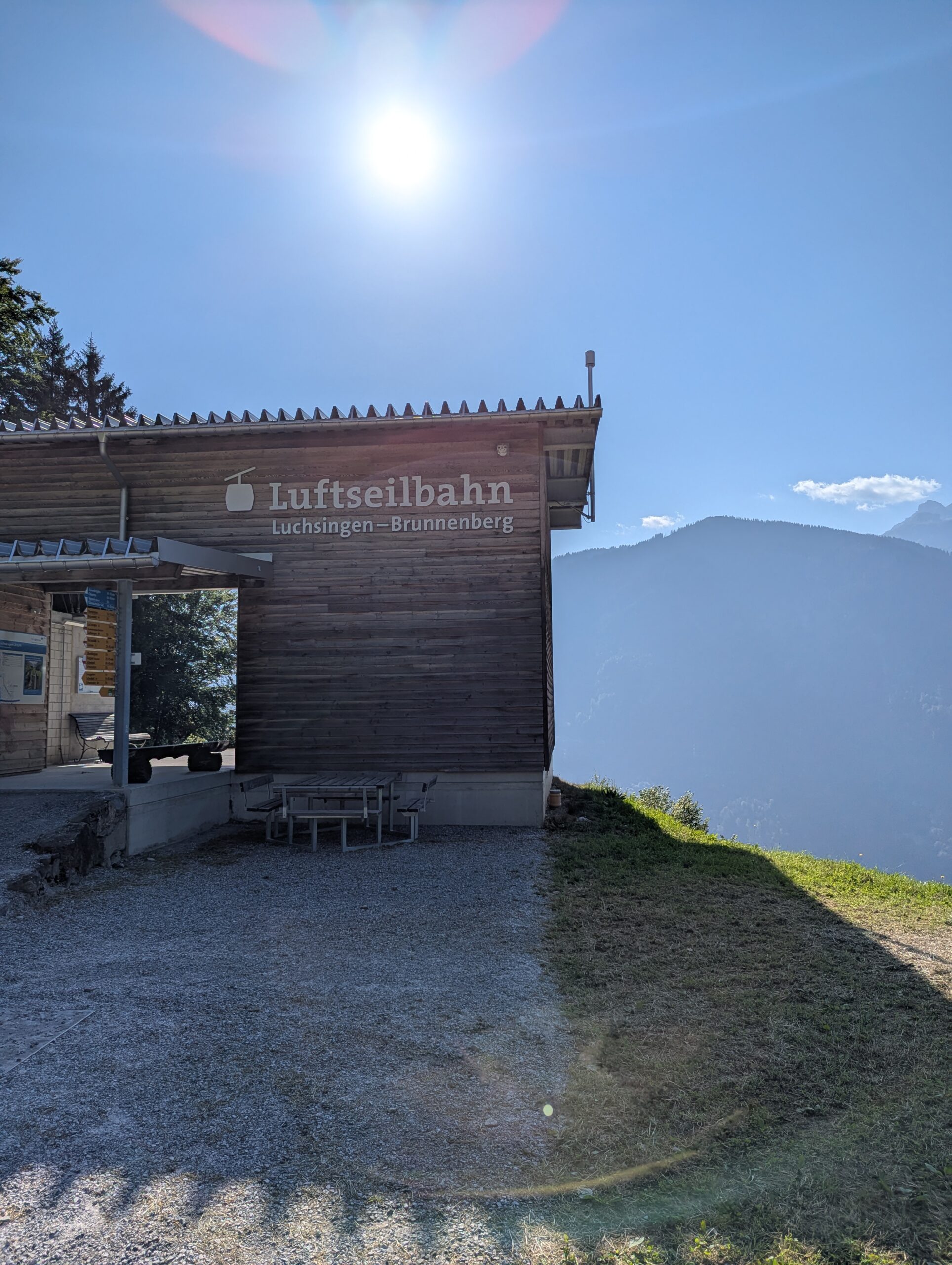 Die Luftseilbahn bringt uns von Luchsingen auf den Brunnenberg. Die Luftseilbahn dient den Technischen Betrieben Glarus eigentlich für den Unterhalt der Kraftwerkseinrichtungen. Darüber hinaus wird die Pendelbahn touristisch genutzt.
