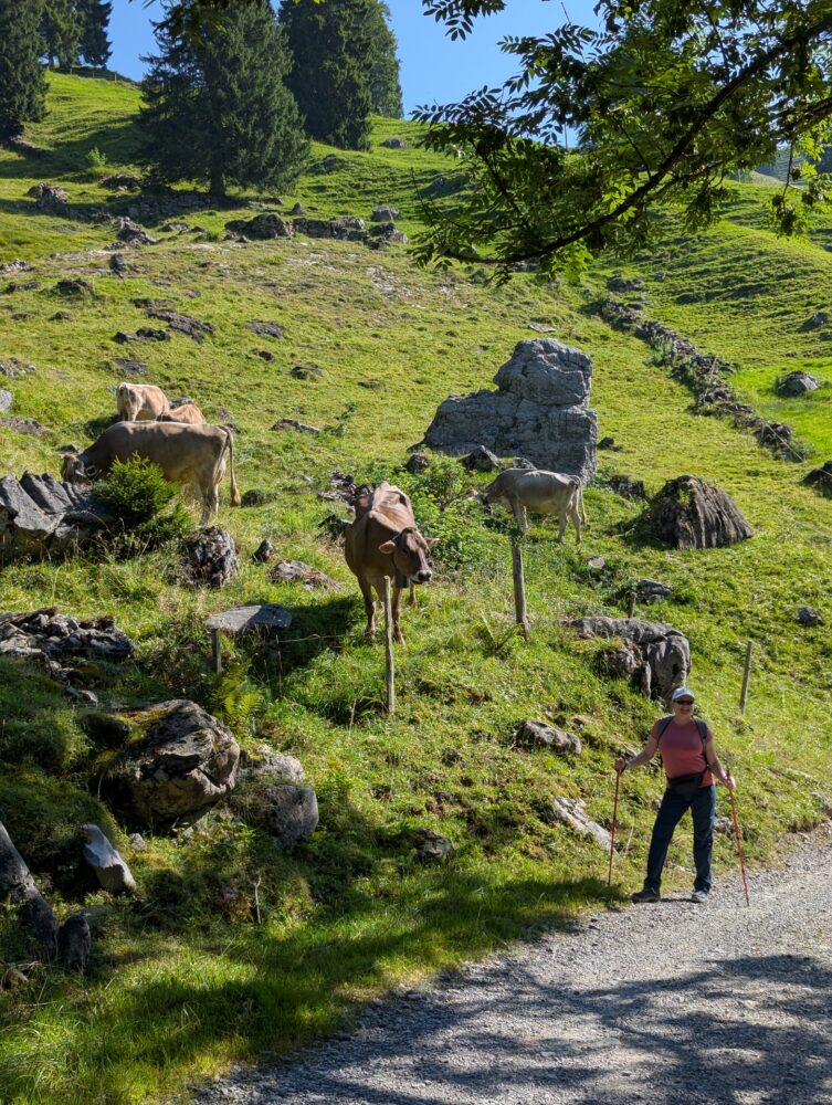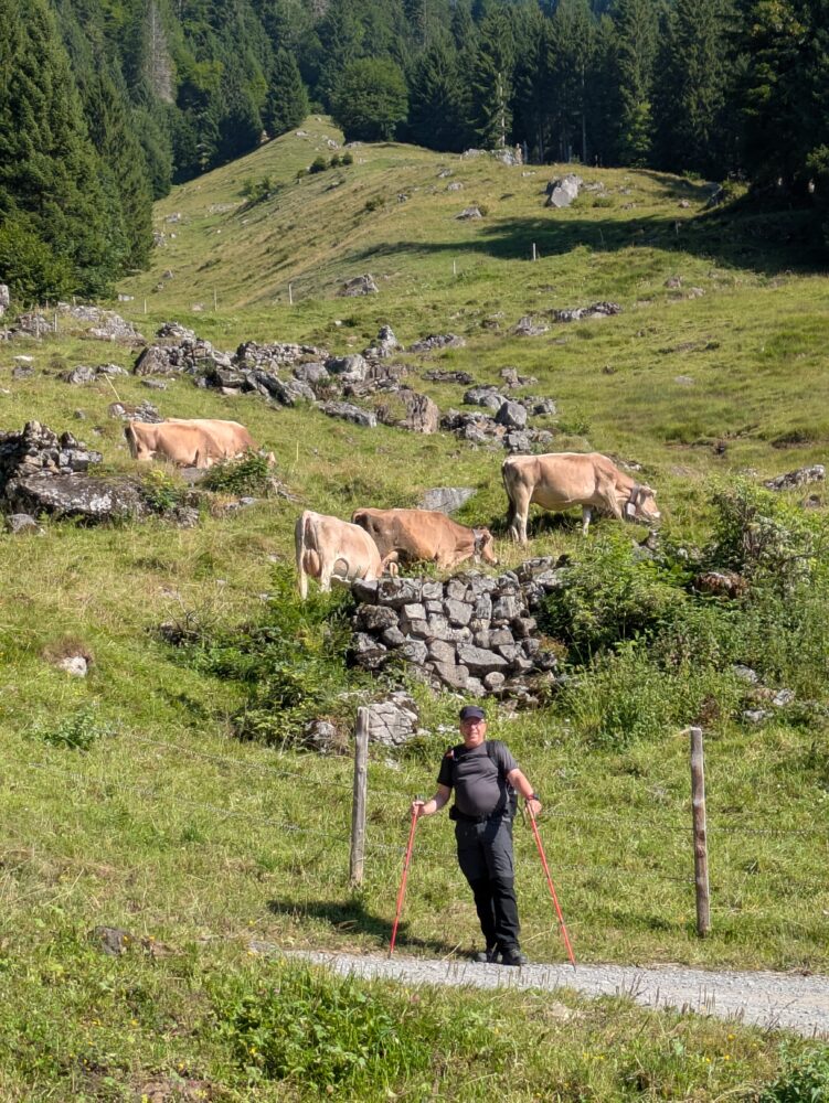 Die Wanderung startet bei der Bergstation Brunnenberg und führt uns über Wiesen und durch lichte Wälder vorbei am Mittelstafel der Alp Oberblegi, wo wir auf dem Rückweg einen feinen Alpkäse gekauft haben. Der weitere Anstieg bis zum Oberblegisee auf 1422 Meter über Meer ist sehr kräftezehrend, da der Wegverlauf sehr steil und der Sonne ausgesetzt ist.