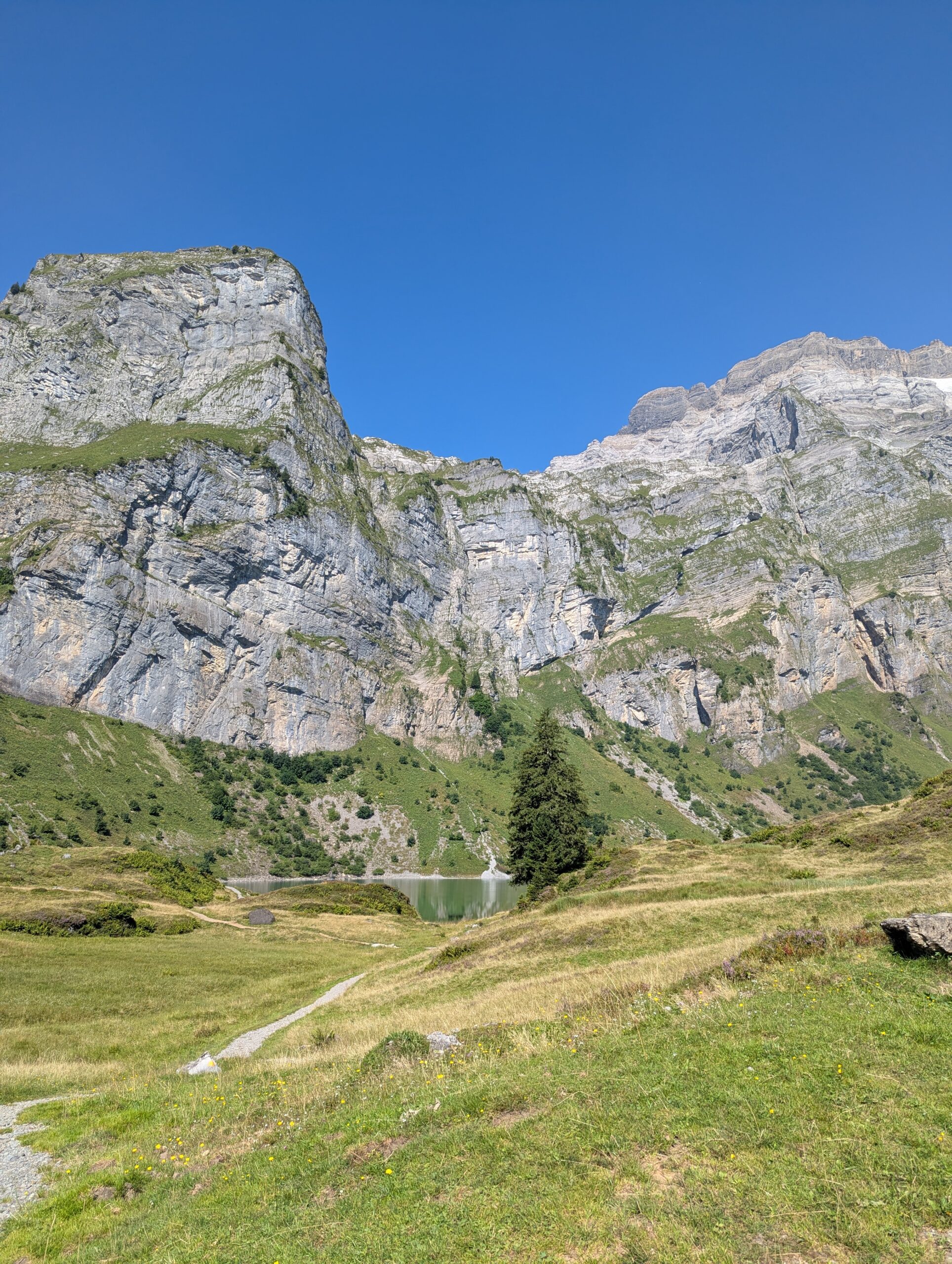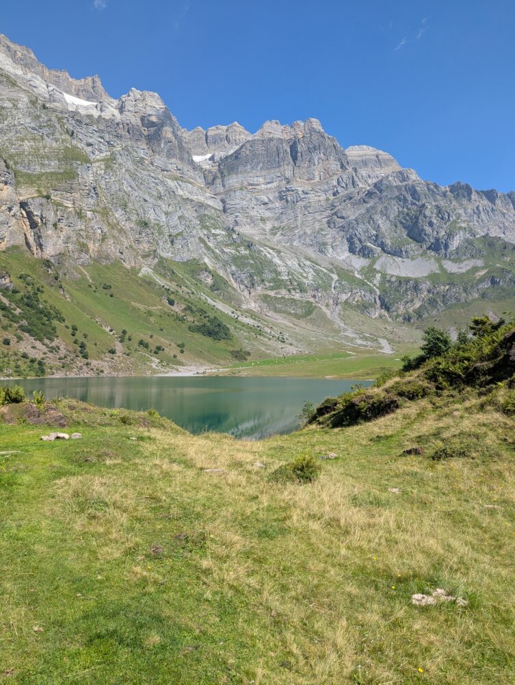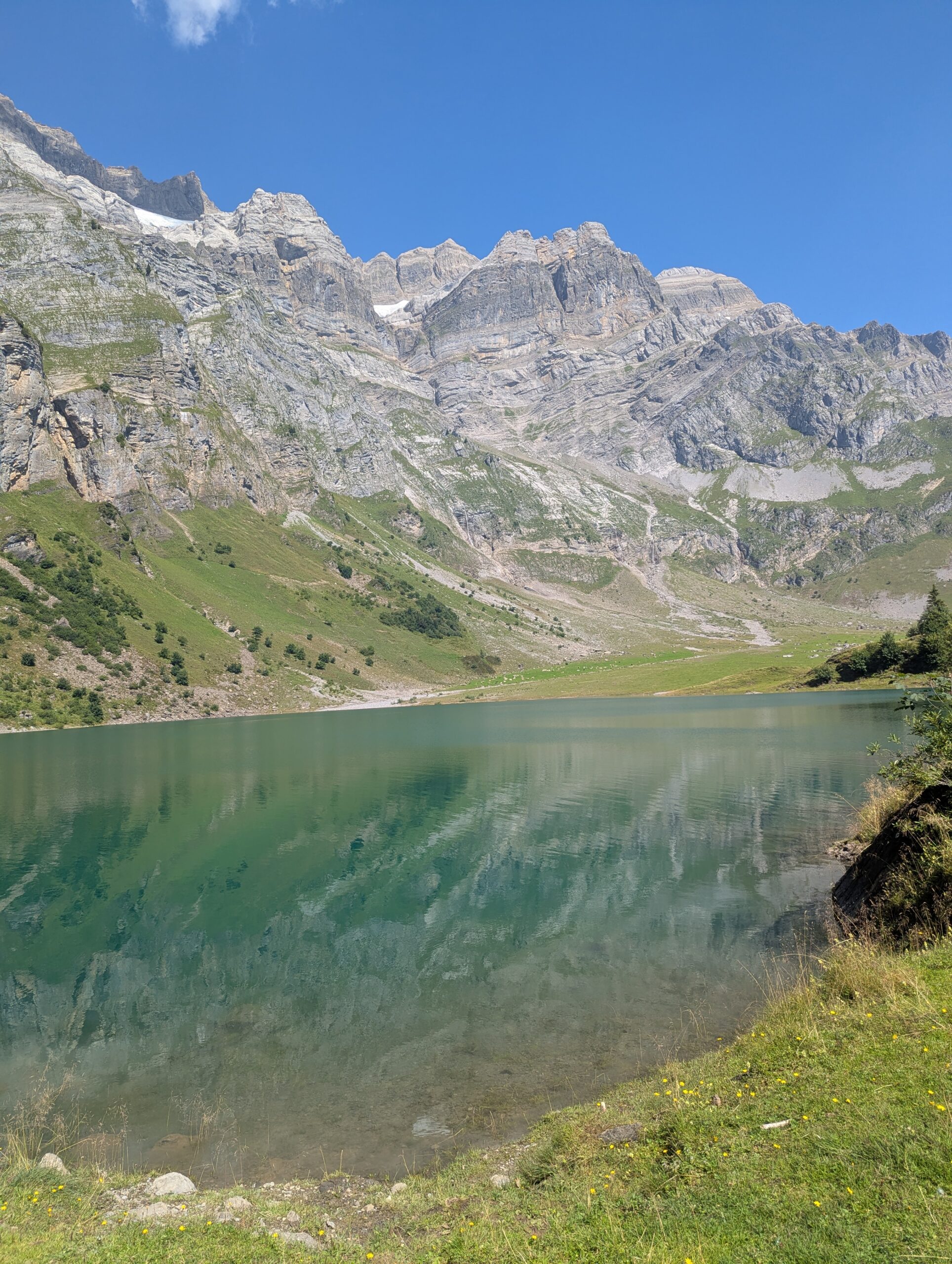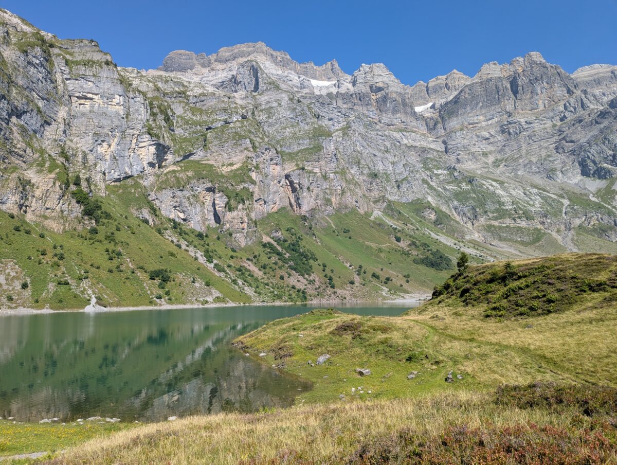 Am Oberblegisee angekommen, heisst es Inne halten und sich von der atemberaubenden Kulisse verzaubern zu lassen. Laut hallt das Echo vom eindrucksvollen Glärnischmassiv zurück. Hier lässt es sich geniessen, die Seele baumeln lassen und ein Picknick geniessen. Ein erfrischendes Bad im Oberblegisee darf natürlich auch nicht fehlen.